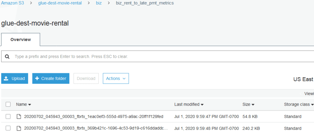Conveniently, the above SQL DDL code was auto-generated. Now that it has run, let’s see it as stored in S3 in the screenshot below.