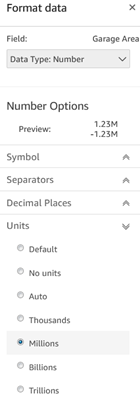 - Format: Many options here, including Units, as shown in the screenshot below.