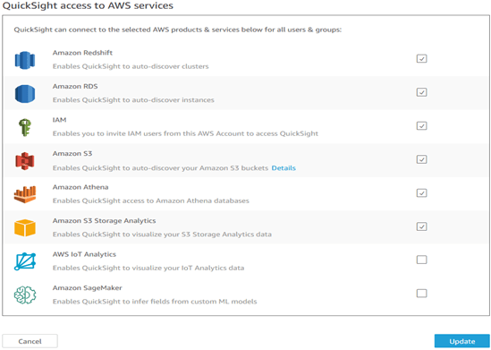 Quicksight access to AWS services: