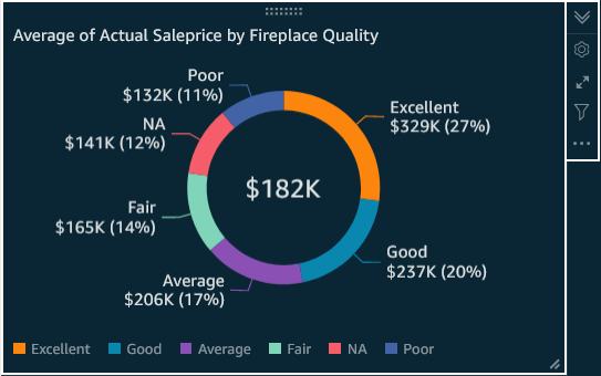 The visual below is called a Donut. While I will show dark-themed visuals, all Quicksight Visuals are also available in lighter out-of-box themes, and custom themes can be built, as well.